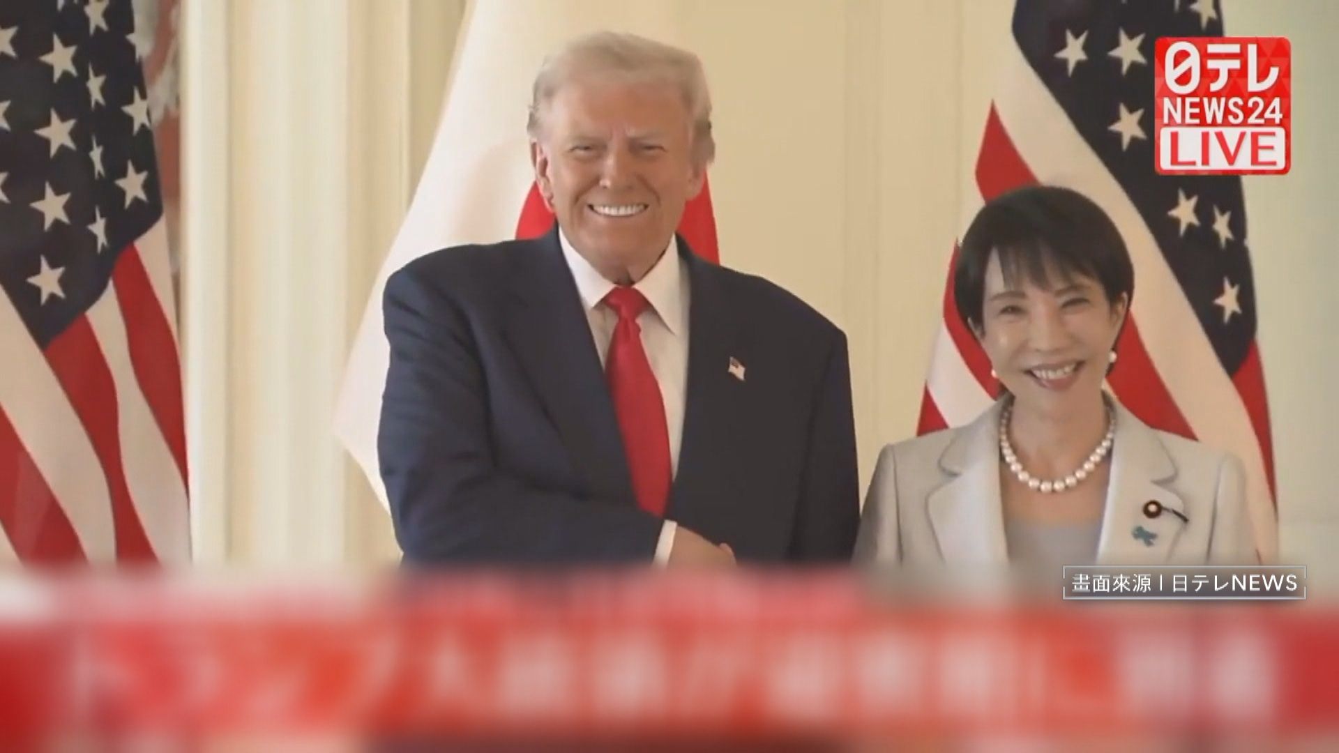 一見面就熱情握手問好,美國總統川普訪問日本第二天,28號來到東京港區的迎賓館,與日本首相高市早苗舉行會談。美國和日本的國歌接連奏響,儀仗隊施行榮譽禮,盛大歡迎川普。美國總統川普:「我從(安倍)晉三那邊聽到的所有事情,都在說妳(高市)會成為最偉大的首相之一。」日本首相高市早苗:「我剛剛在川普總統的房間看了棒球,道奇隊1比0領先中。」高市早苗閒話家常開場,展現親和力,接著就說很期待和川普見面,並感謝川普過去和前首相安倍晉三維持長年友誼。