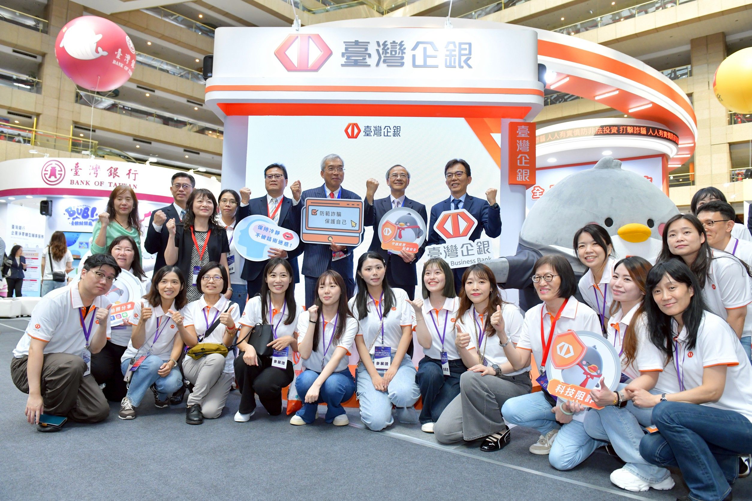 為因應日益嚴峻的金融詐騙問題,臺灣企銀設計多項兼具教育與娛樂性的互動活動,如「全民阻詐」透過體感遊戲,模擬銀行臨櫃真實情境,讓民眾親身體驗常見詐騙手法,並學習辨識可疑話術;「打詐訓練室」中以趣味射擊形式,挑戰真假訊息辨識,培養民眾快速識破投資詐騙的能力;「防詐騙電話亭」可一鍵了解「SIM卡阻詐」、「資安防護健診」及「安全鎖」三大防詐創新科技,民眾還可化身「Hokii打詐超人」擊退詐騙魔王;「金安研習營」則請民眾擔任金融安全導師,指導學員識破詐騙手法,與臺灣企銀攜手守護家園。