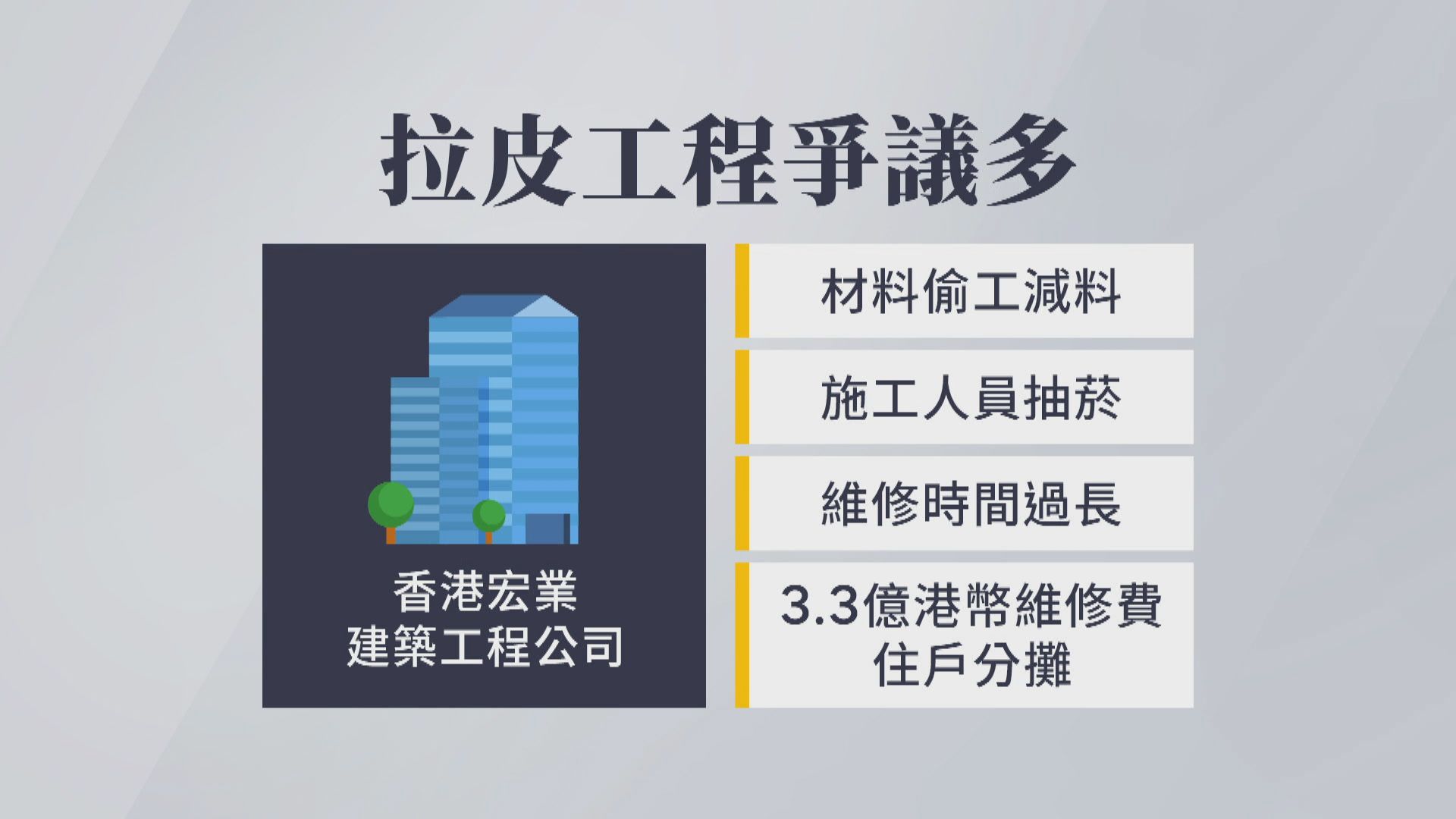 香港保安局局長鄧炳強:「大牆的外牆,一些保護網、保護幕,一些防水帆布跟塑膠布受火之後的蔓延程度,比合規格的物料遠遠猛烈跟蔓延得快,這是不尋常。」其實這間香港宏業建築工程公司過去就爭議不斷,除了被爆出建築材料疑似偷工減料外,也被居民反映施工人員竟然在工地區域抽菸。另外,維修工程時間拖太久,至今已經超過1年,更讓住戶不滿的住戶承擔高價維修費,整棟大樓沒有警報聲。