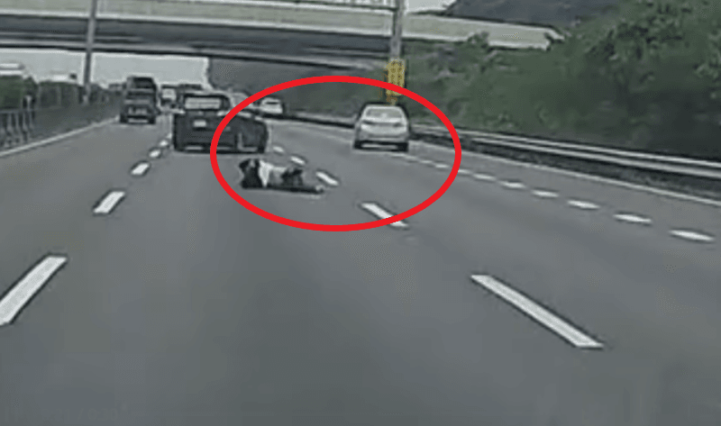 洪男於28日國道1號北上楠梓路段,從行駛中的自小客車摔落,並翻滾至隔壁車道,左側車輛及時閃避,險些造成碰撞意外,而後方車輛見狀也緊急煞車,才未釀成傷亡。