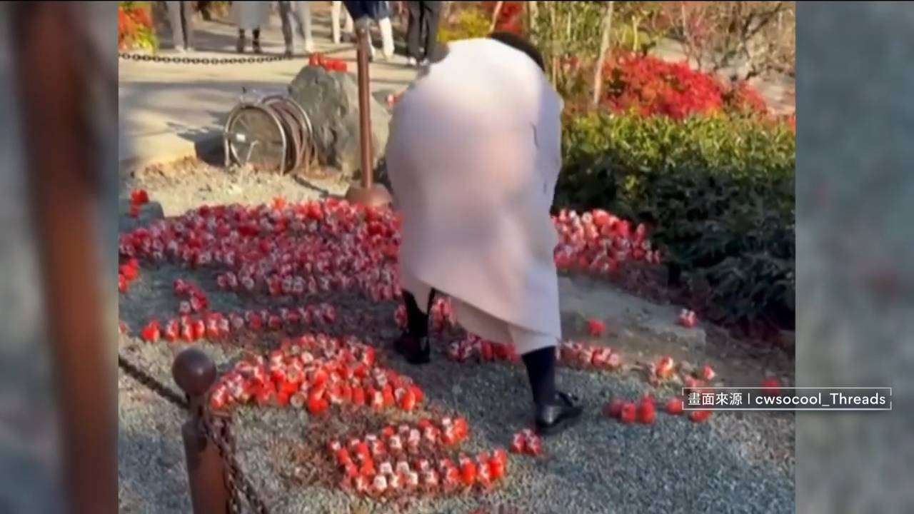 日本、中國關係緊張之際,北京當局呼籲公民不要去日本,但昨天(11/30)卻有一名疑似中國女子,闖入大阪勝尾寺禁止進入區域,破壞台灣遊客排列成台灣形狀的達摩玩偶,畫面在網路流傳後,引起台灣人群情激憤。
