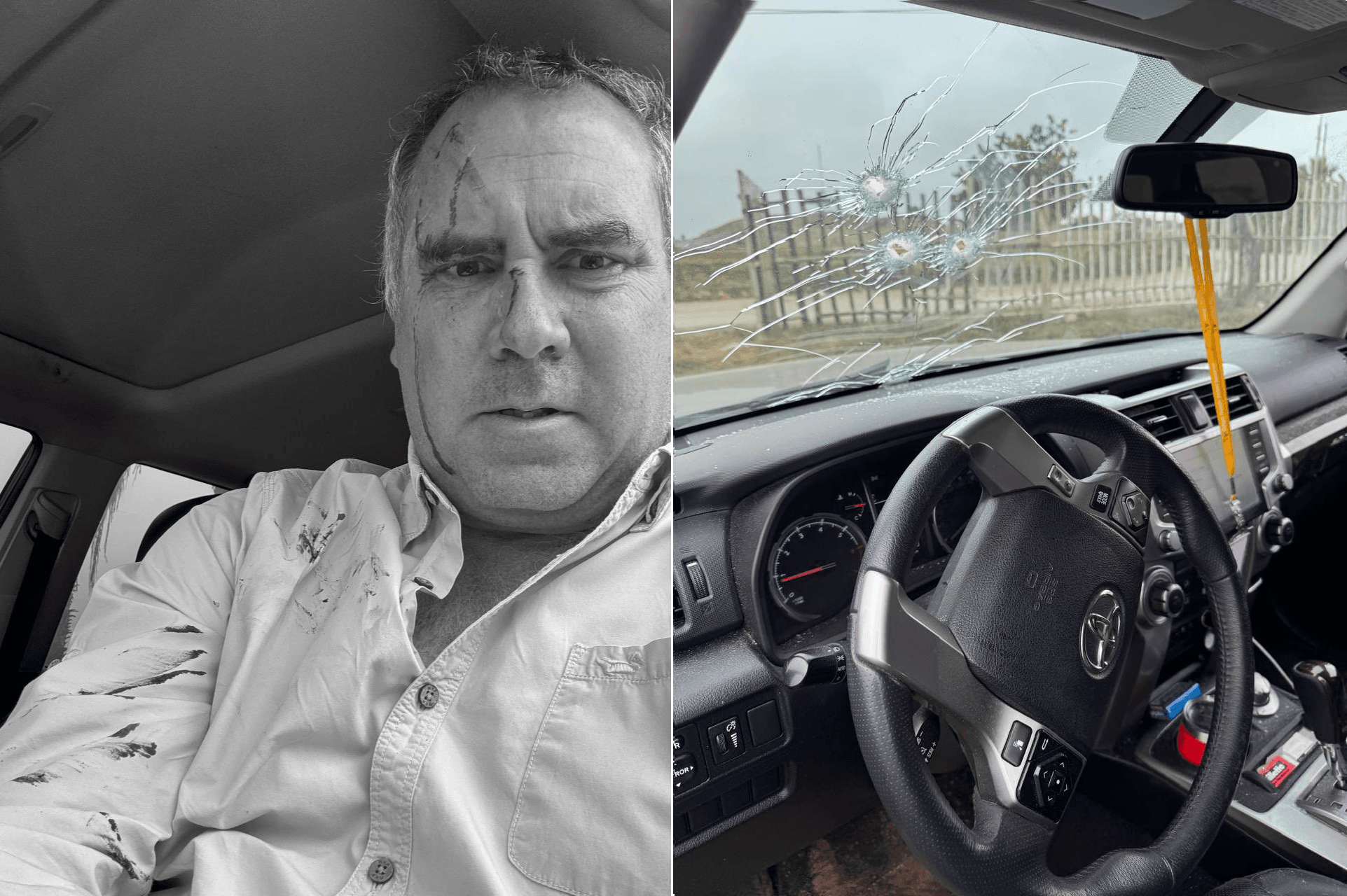 秘魯一名總統參選人在首都附近遭遇驚險襲擊,兩名不明槍手騎乘機車,朝休旅車連開「8到9槍」,儘管車輛前擋風玻璃被3顆子彈擊碎,造成駕駛臉部和襯衫沾血,但他展現出強悍的自保能力,反擊歹徒連開「至少12槍」還擊,最終成功脫身。