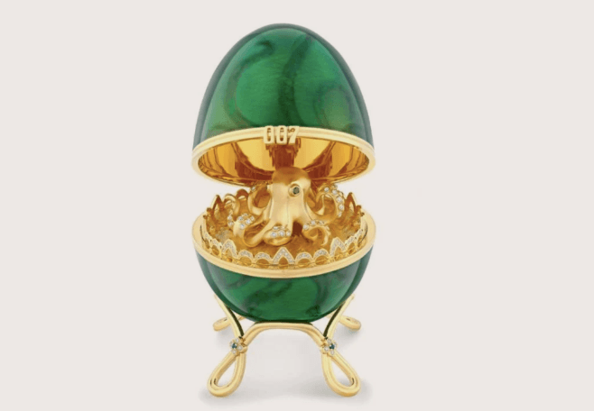 奧克蘭警方上月28日獲報,該男子在市中心的帕特里奇珠寶店(Partridge Jewellers)當場吞下墜鍊,遭「偷竊」墜飾的Fabergé 007特別版八爪魚蛋吊墜,以18K金打造,蛋型外殼為綠色雕花琺瑯,鑲有60顆白鑽、15顆藍寶石,裡面則有隻雙眼嵌黑鑽的18K金迷你章魚,市值高達美元1.9萬(約新台幣60萬元)。
