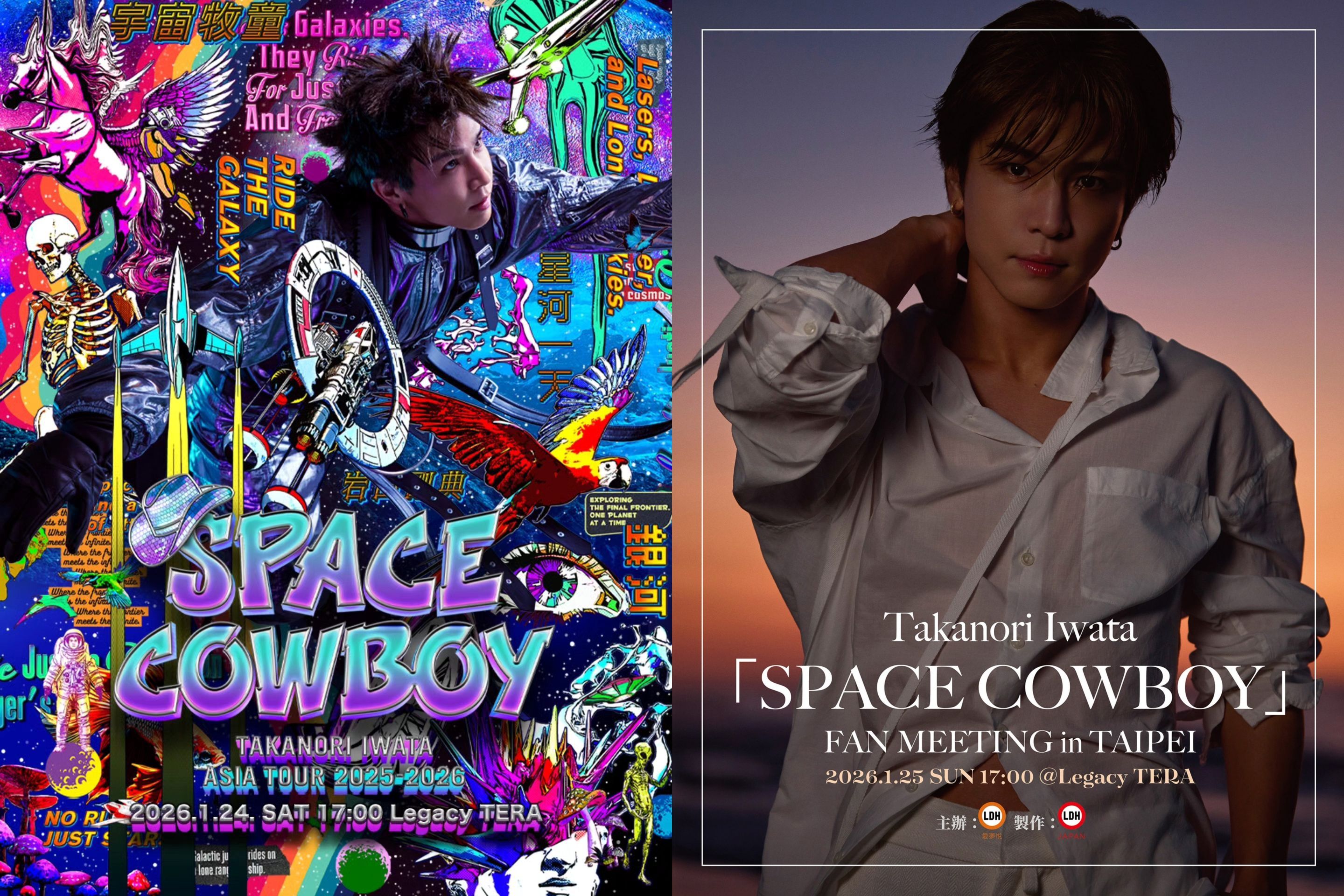 岩田剛典「Takanori Iwata ASIA TOUR 2025-2026 "SPACE COWBOY"」以及「Takanori Iwata「SPACE COWBOY」FAN MEETING in TAIPEI」兩場演出,門票已於KKTIX開賣,更多詳情可見LDH愛夢悅官方社群專頁。