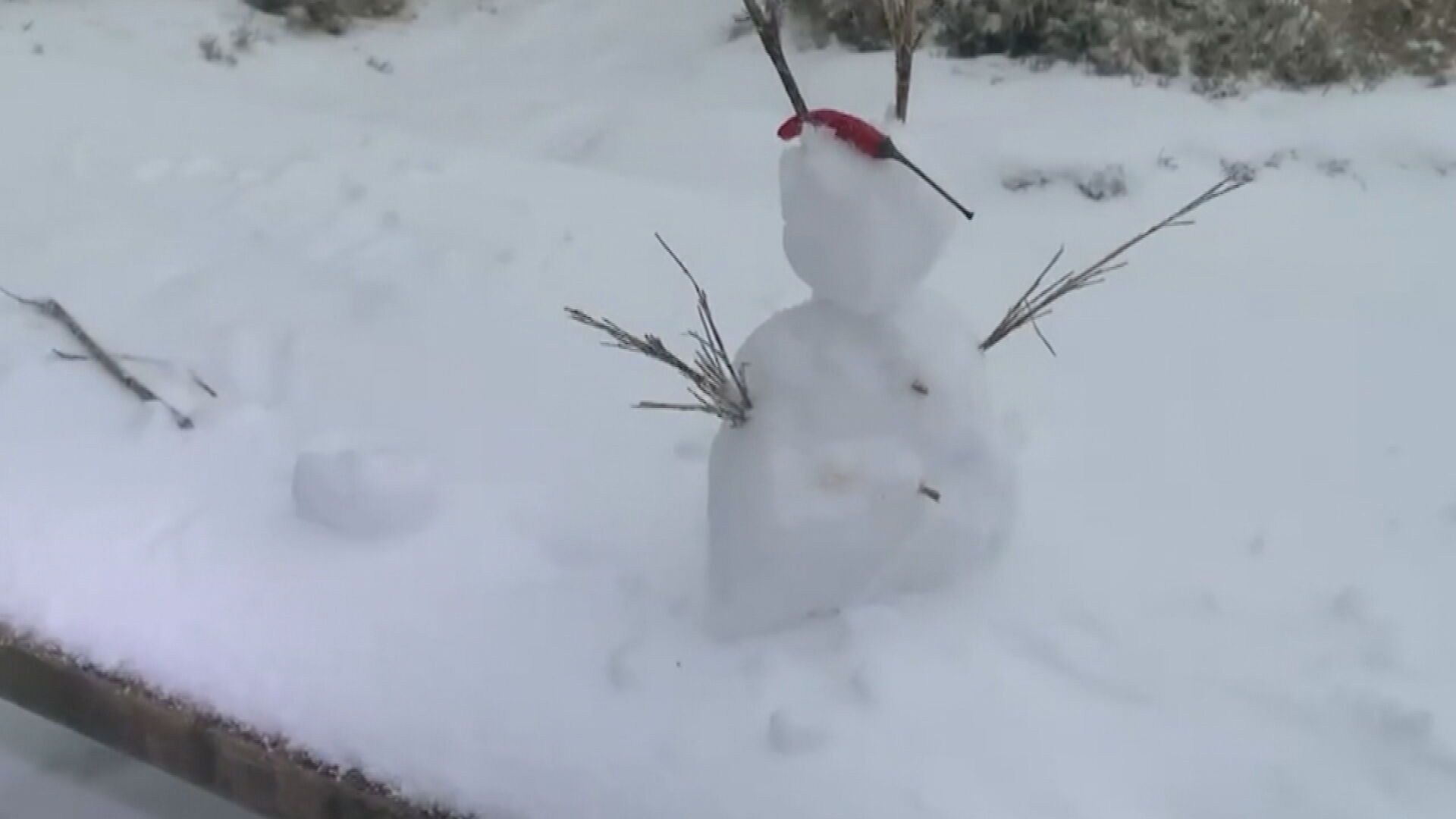 登山客:「這個是什麼東西,應該不是雪人,是四不像。」登山客堆起兩顆雪球,還用路邊樹枝,還有辣椒當做帽子,堆起雪人來。登山隊25日下午抵達山區過夜,凌晨時發現開始飄雪,成了這趟旅程的耶誕禮物。