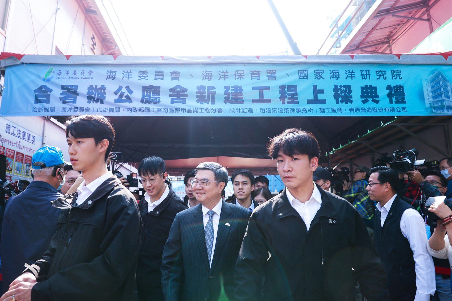 卓榮泰今日上午前往高雄出席「海洋委員會、海洋保育署及國家海洋研究院合署辦公廳舍新建工程」上樑典禮,他致詞時表示,清晨4時即起床準備,到機場時,看到許多媒體一早在場守候,讓他相當感動。