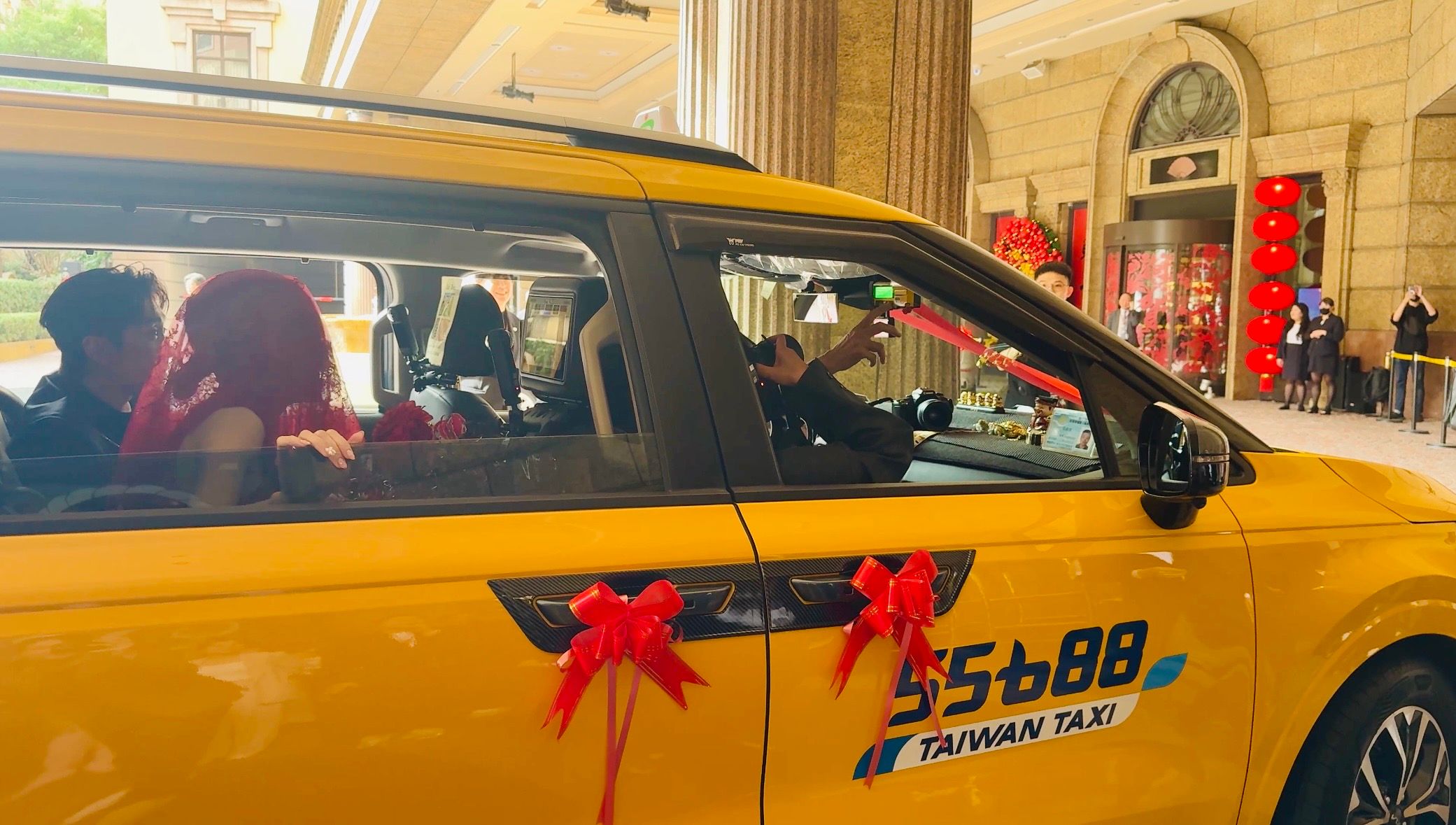 藝人Lulu(黃路梓茵)與陳漢典今日(25日)舉行文定儀式,最吸睛的不是名車,而是整排55688台灣大車隊計程車。Lulu的父親黃路家翔是職業計程車司機,女兒出嫁他親自駕駛主禮車,完成職涯中最重要的「護花任務」,用計程車送女兒出嫁;而他上車職人魂爆發,按下跳表機並給收據,惹笑女兒與女婿。