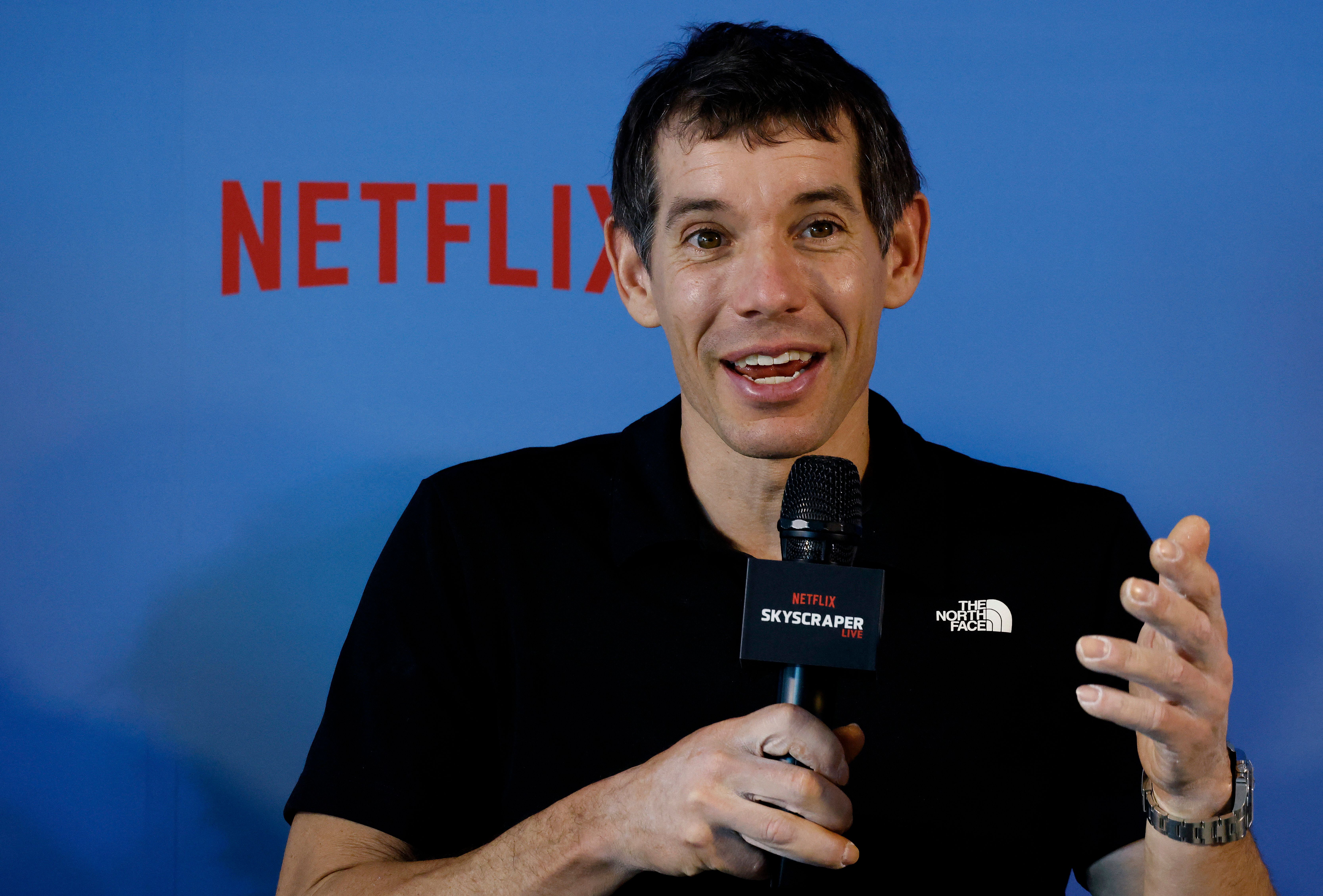 不只現場上千名粉絲,還有上萬人在線上緊盯他的每一步,全球一起見證歷史時刻,讓Alex Honnold完成兒時夢想。Alex Honnold:「老實說他們都希望我好,只是讓整個體驗感覺更有節慶氣氛,有點像是很多好心人都在支持我,也玩得很開心」。