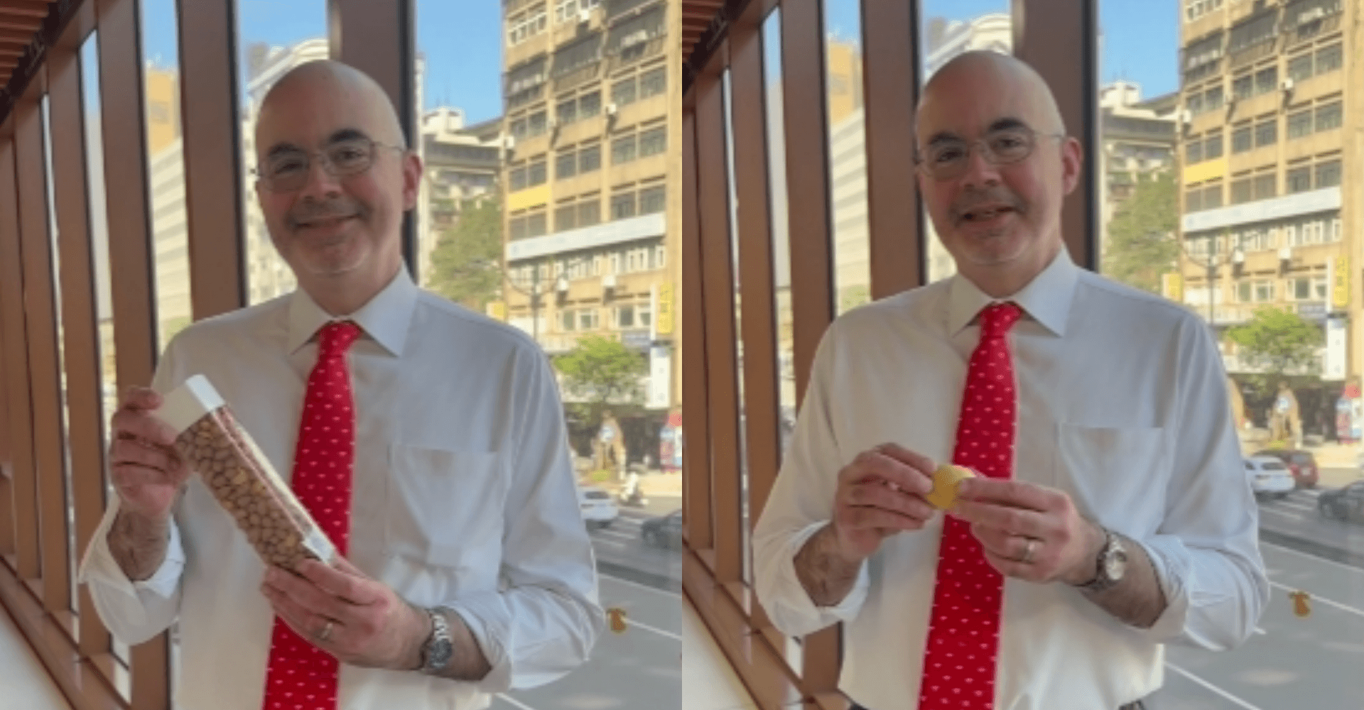 谷立言的購物清單中,除了蘿蔔糕、壽桃、豆乾、芋香蛋餃及春聯等應景年貨外,更巧妙挑選了馬鈴薯與花生,藉由諧音趣味祝賀台灣民眾「馬上成功」與「好事會發生」。影片最後,他也不忘送上「美台友好」的真誠祝福,與大家一同歡慶佳節。
