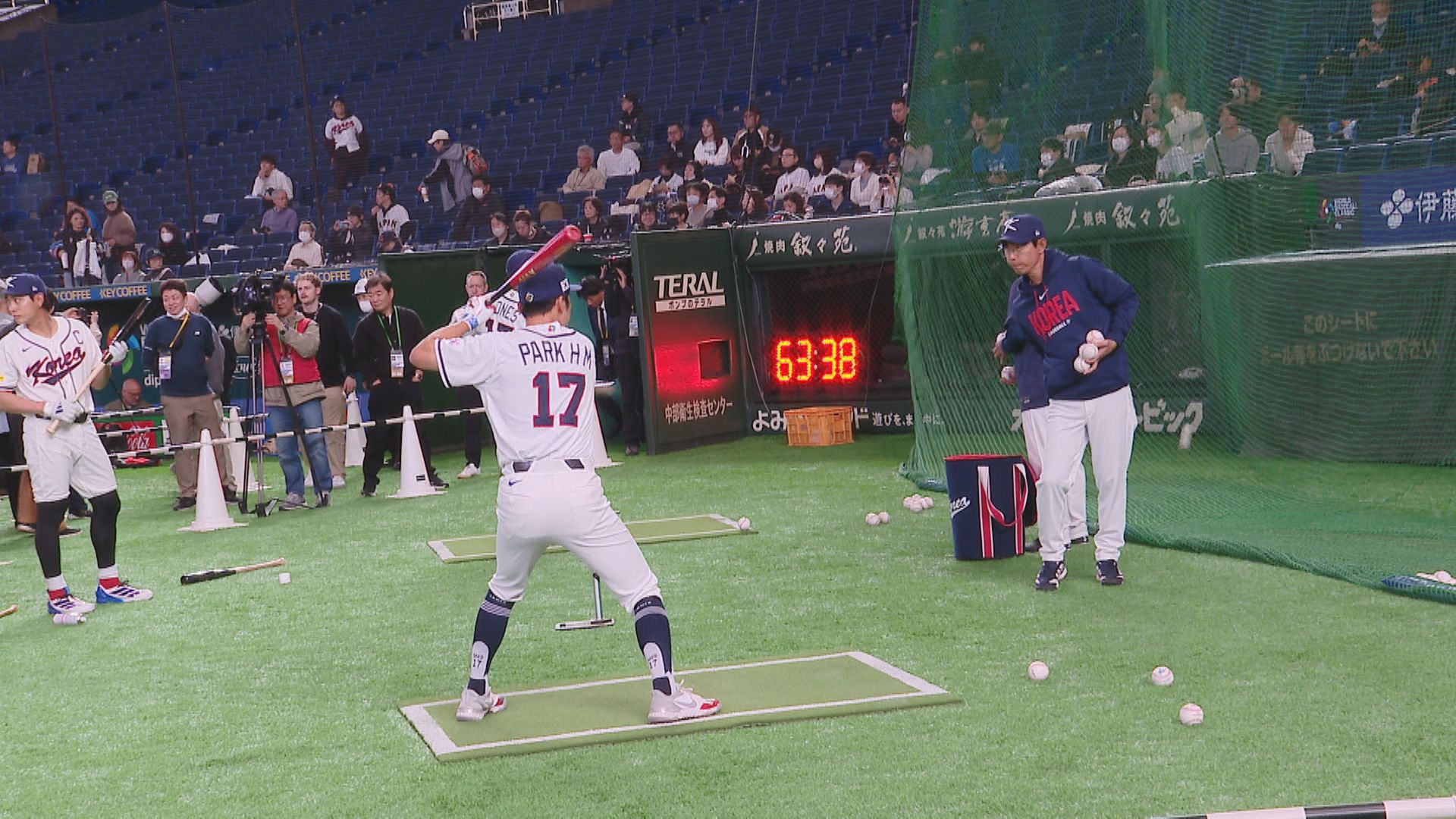 三局下半,面對韓國第二任投手盧景銀,依舊沒能止血,Juan Soto的安打,Guerrero Jr.中間方向深遠的飛球落地形成長打,一壘上的Juan Soto連過三個壘包,一樣最後躲過觸殺跑回第四分。透過重播撲壘畫面,儘管韓國隊立刻提出挑戰,但慢動作可以發現Juan Soto是用左手像自由式的動作躲過捕手觸殺。這個半局韓國隊動用四名投手,但是多明尼加四支安打、四次保送讓比數來到7:0。