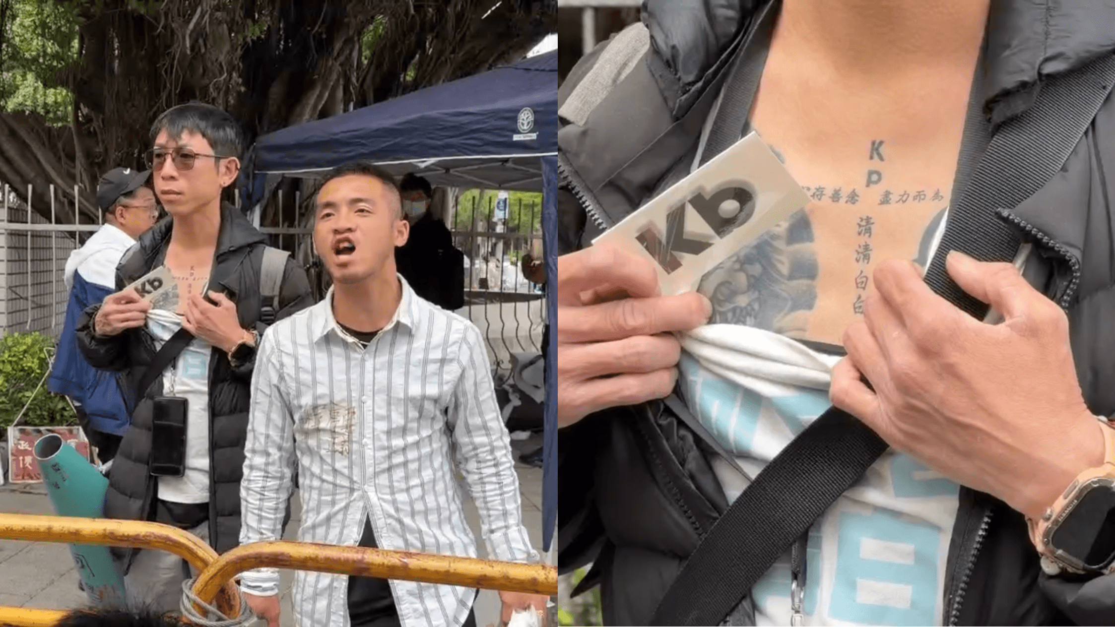 宣判前夕,台北地院外已聚集大批柯文哲支持者,維安警力嚴陣以待,現場群眾情緒激昂,一名小草特地露出胸前刺青供現場媒體拍攝,上頭刻著柯文哲名言「心存善念、盡力而為」以及「KP清清白白」,表達捍衛清白的決心,旁邊一名男子則叫囂:「沒證據沒金流憑什麼羈押柯文哲啊!民進黨不要太過分哪!」