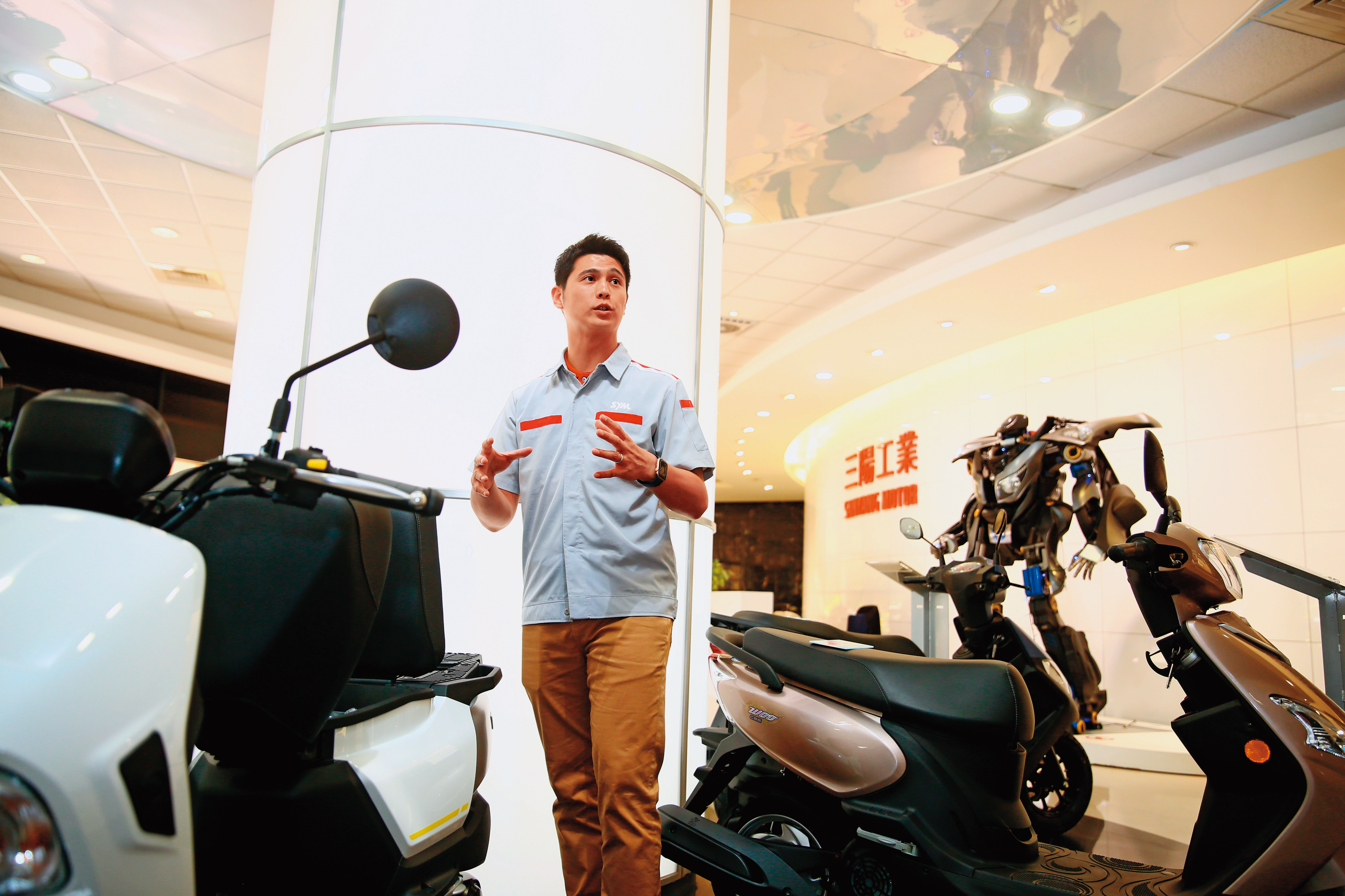 能讓三陽一年多賣出30多萬台的關鍵,正是海外市場。而這位身著白色襯衫,袖口反折露出手腕上Apple Watch、一句話就點出吳清源想法的帥氣男子,正是今年33歲、吳清源的獨子吳奕成,他今年甫加入三陽董事會,以準接班人之姿浮上檯面。