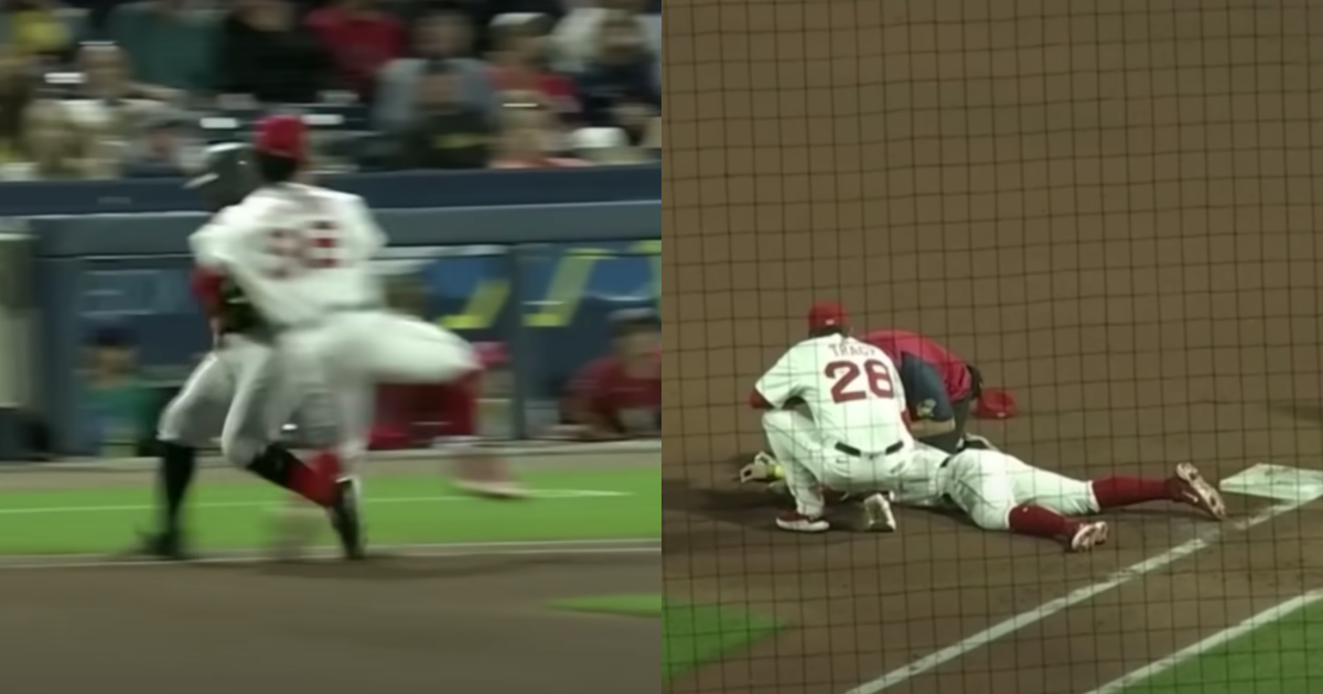 張育成1局下遭到三振,3局下敲出二壘安打,隨後靠著達爾貝克( Bobby Dalbec)的安打跑回分數,意外發生在4局上時,對方打者漢德利(Handley)擊出三壘邊線滾地球,三壘手達爾貝(Bobby Dalbec)接起後傳向一壘,未料有些傳歪,張育成為了接球與漢德利路線重疊,當場被漢德利撞上,2人雙雙倒地。