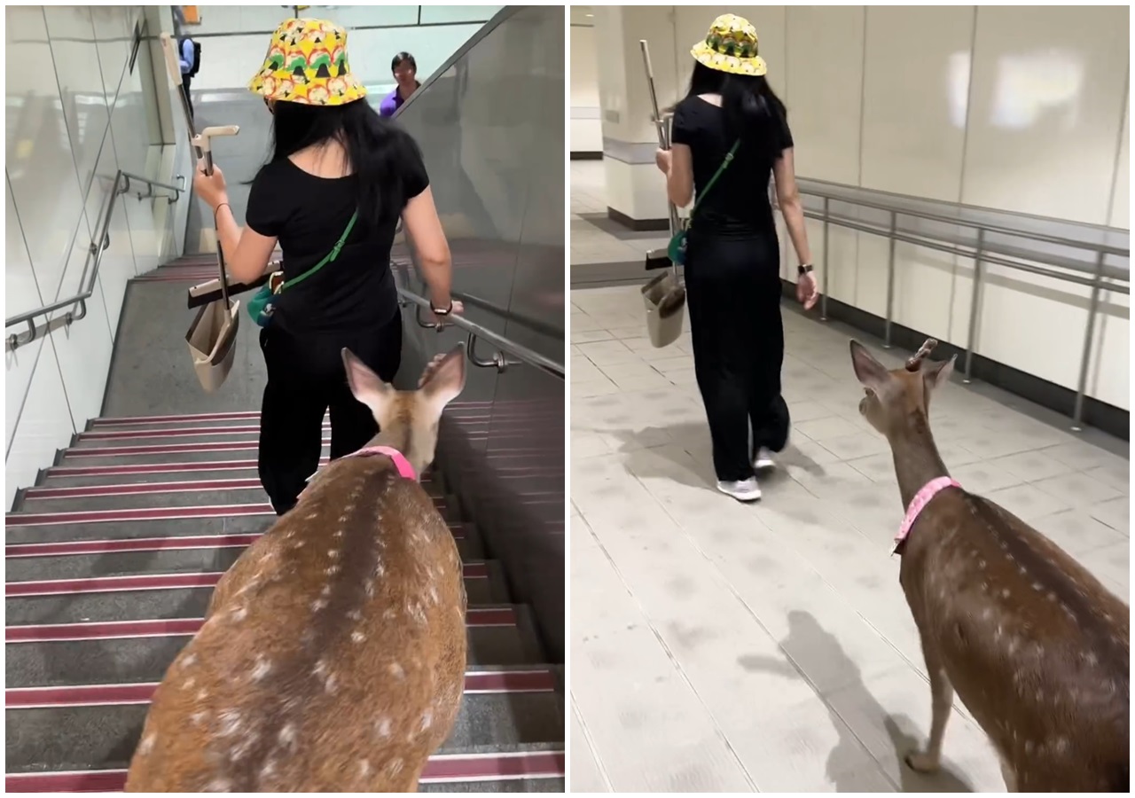 昨(7)日社群平台「Threads」上出現一段影片瘋傳,從畫面中可見小有名氣的「鹿平」梅花鹿跟著主人穿梭在北捷南港展覽館站的連通道,牠在沒有牽繩下仍跟緊飼主的腳步,甚至還可以正常下樓。