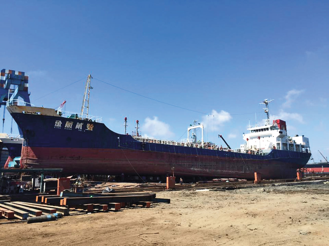 由楊鎮浯家族掌控的金欣海運,旗下船齡40年的金航貳號因2019年底故障爆出運油弊案。(翻攝昇航造船廠臉書)