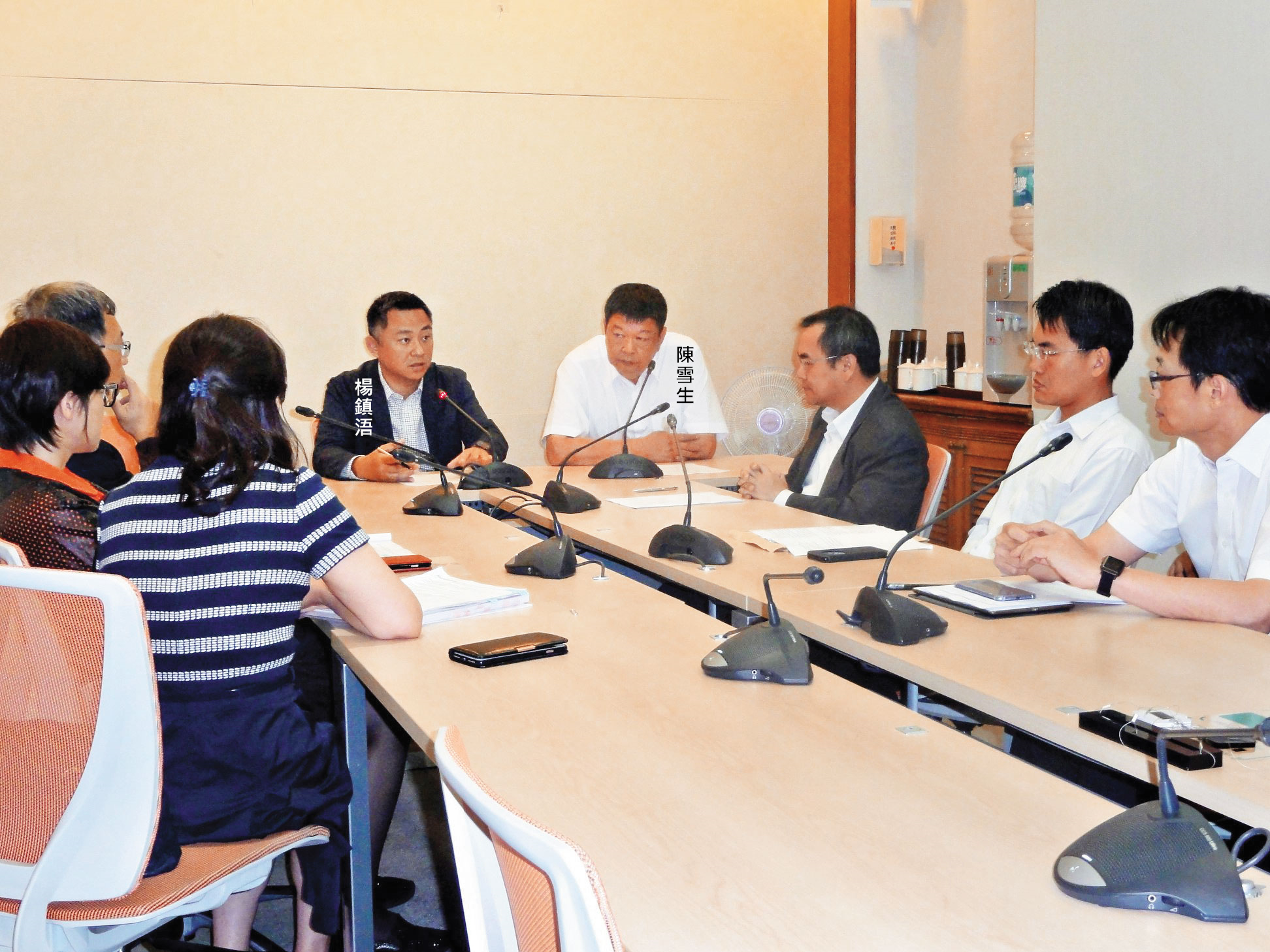 時任立院交通委員會召委的陳雪生涉替金欣海運開協調會施壓中油涉收賄。圖為陳雪生與楊鎮浯立委時期的開會畫面。(翻攝陳雪生臉書)
