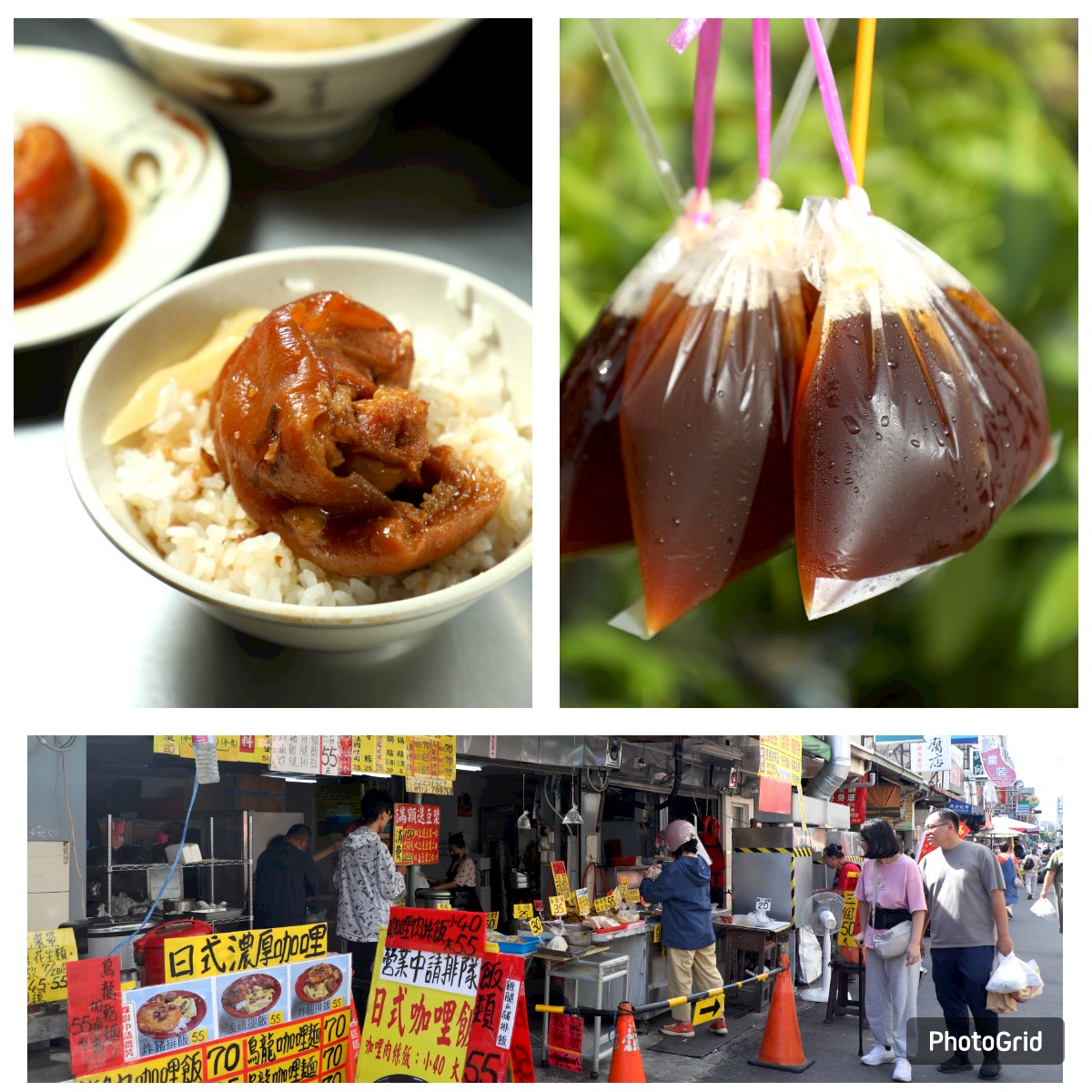 我後來又加碼吃了蹄筋部位的爌肉飯,口感完全不同,Q彈到令人髮指的程度。桌上店家特製的生辣椒也被推崇為爌肉飯必加的好配料,能提升整體風味。我也加了,確實如此,很推薦。大家通常排隊買爌肉便當帶走,便當裡面會附高麗菜、滷蛋和油豆腐等配菜,分量充足又美味。很多人還會點隔壁的太空紅茶冰一起享用。