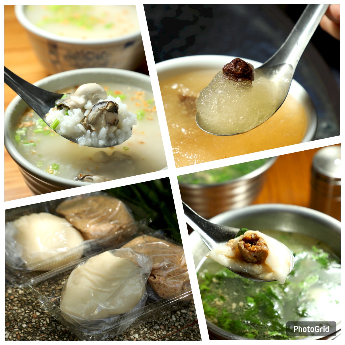 老闆娘堅持每日從建國市場新鮮採購蚵仔,並加入大米、大骨熬製,最後加上蔥頭與芹菜點綴,因為生意太好,滾燙的粥底很容易一下就見底,時時要再補入新的粥底,就連非用餐時段的下午茶時間都是滿滿人潮。
