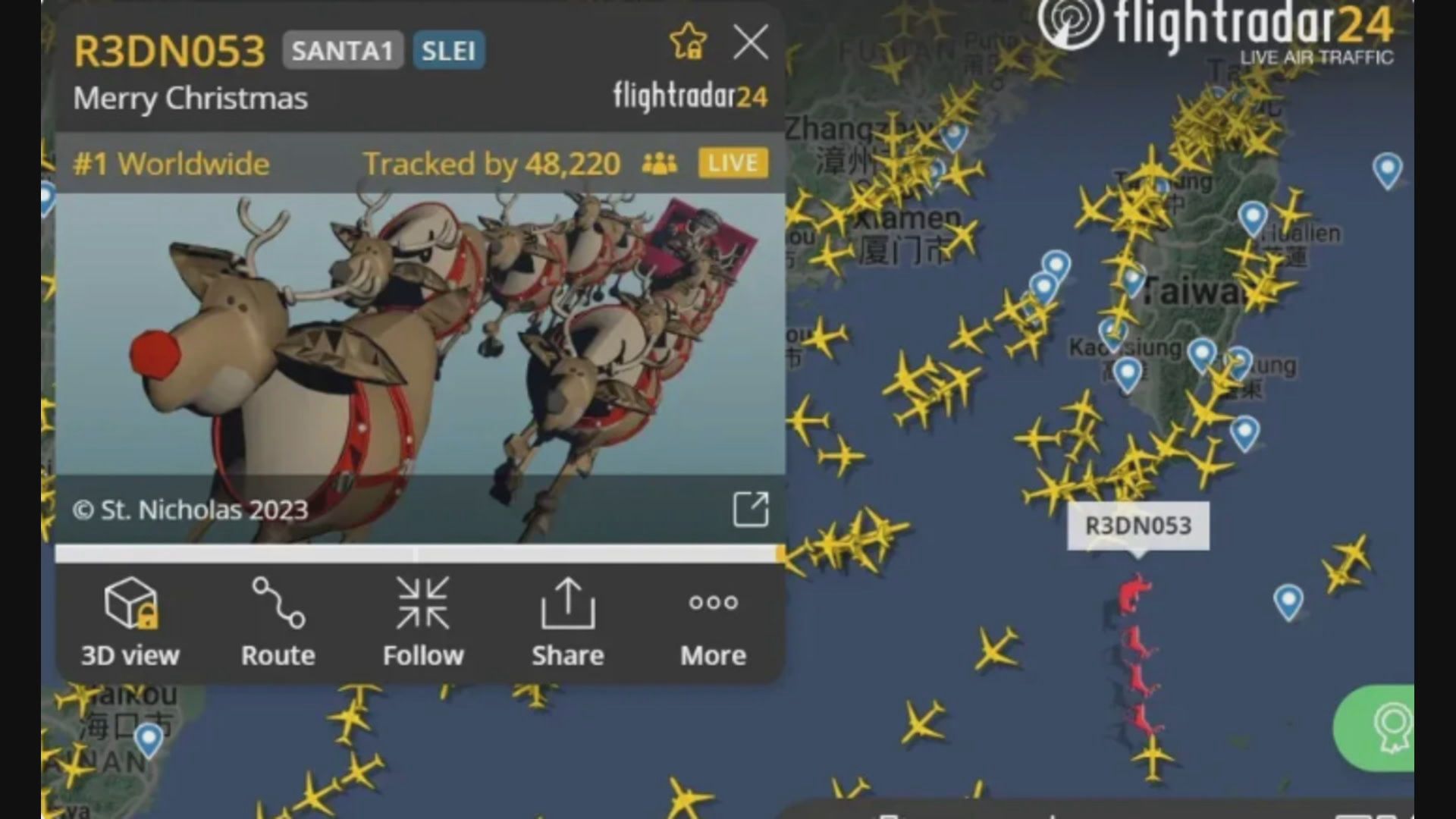 耶誕老人架雪橇送禮 平安夜21:15飛越台灣上空