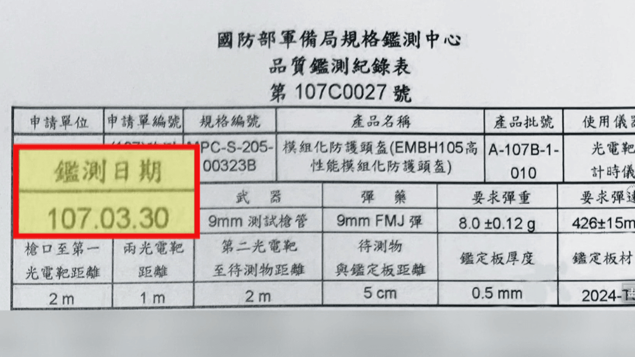 國防部:規格鑑測中心獲TAF標誌 國造抗彈板認證無誤